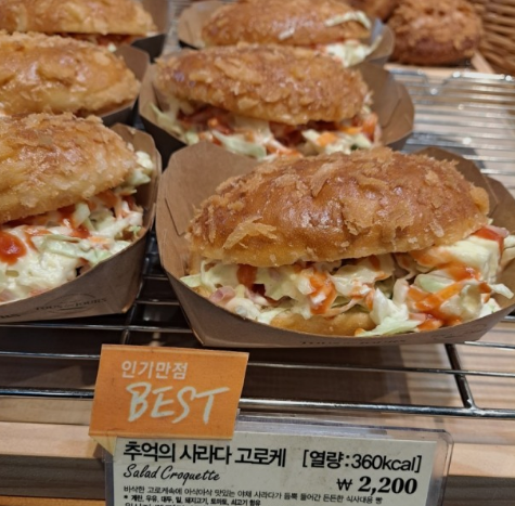 어릴적 추억이 저절로 떠오른다고 소문이 자자한 뚜레쥬르 추억의 사라다 고로케. 수많은 빵 가운데서 베스트로 뽑히는 이유가 있을 만큼 정말 남녀노소 모두에게 인기 있는 메뉴라고 합니다. 적당히 기름진 촉촉한 빵과 촉촉한 샐러드의 조합은 한 번도 안먹어본 사람은 있어도 한 번만 먹어본 사람은 없다고 합니다.