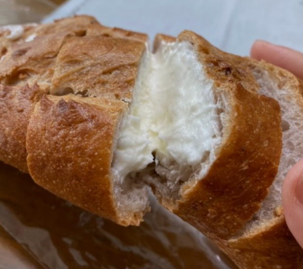 바게트 안쪽으로 촉촉하고 신선한 연유가 듬뿍 들어간 뚜레쥬르의 부동의 인기를 누리고 있는 호두 연유 바게트. 연유가 너무 과하게 들어가 있지 않아서 느끼하지 않다는 것이 오랜 시간동안 사랑을 받은 이유라고 합니다. 빵틈 사이로 씹히는 호두 알갱이가 압권이라고 합니다.