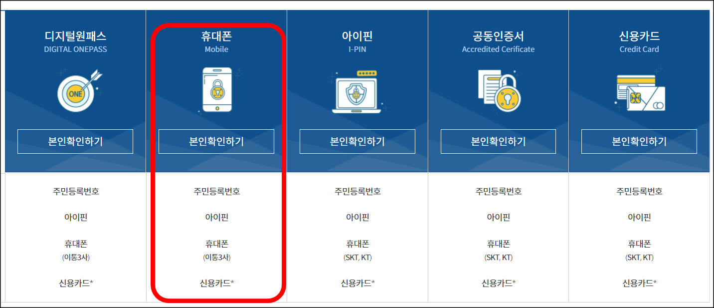 ✅ 내가 인증할 수단중에 편한 것을 선택해 주시면 됩니다. ✅ 가장 편한 것은 휴대폰 본인인증입니다.