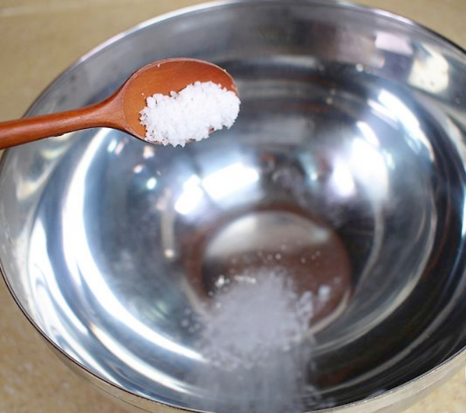 ✅ 천일염 한 줌을 넣어서 잘 풀어줍니다.