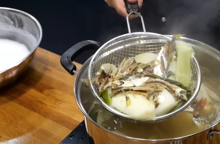 - 황석어젓을 물 2컵과 함께 끓여 비린내를 제거합니다.