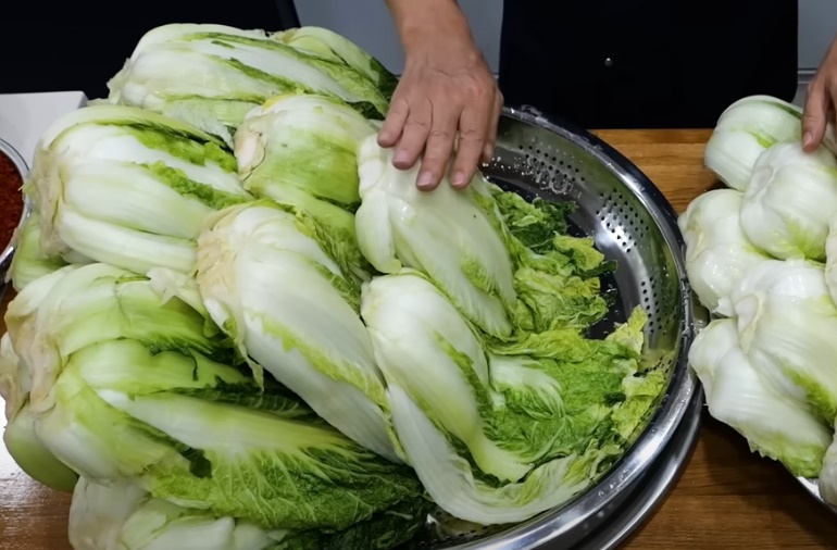 - 물기는 배추를 엎어둔 상태에서 자연스럽게 제거합니다.